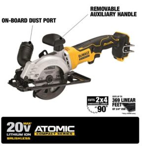 Includes (1) DCD708B ATOMIC 20-Volt MAX compact 1/2 in. drill/driver, (1) DCF809B ATOMIC 20-Volt MAX compact 1/4 in. impact driver, (2) 20-Volt MAX lithium-ion 1.3 Ah battery packs, 20-Volt MAX charger and contractor bag and (1) DCS571B 4-1/2 in. cordless circular saw (tool only).