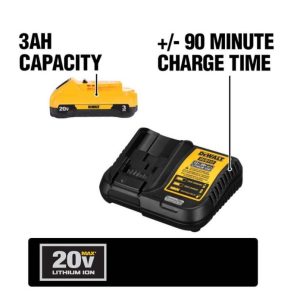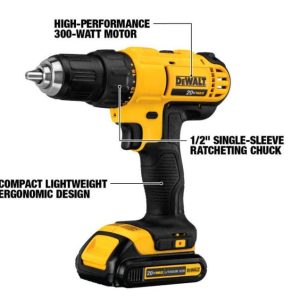 Includes DCD771 20-Volt MAX 1/2 in. drill/driver, DCF885 1/4 in. impact driver, 20-Volt Max lithium-ion 1.3 Ah battery packs, 20-Volt Max charger and contractor bag