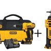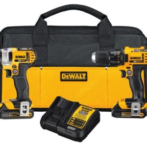 The DEWALT 20-Volt Lithium-Ion 2-tool combo kit includes a powerful, variable-speed drill/driver that provides up to 2000 RPM and a handy impact driver that delivers up to 2800 RPM and 1400 in./lbs. of maximum torque. These compact and lightweight tools come supplied with two 20-Volt, 1.5Ah lithium-ion batteries and a charger that replenishes them in as little as 30 minutes. Belt clips allow easy portability around the job site. For a limited time get a bonus Bare 20-Volt 1/4 in. Impact Driver with purchase.