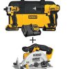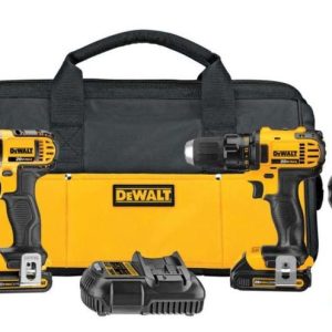 The DEWALT 20-Volt Lithium-Ion 2-Tool Combo Kit includes a powerful, variable-speed drill/driver that provides up to 2000 RPM and a handy impact driver that delivers up to 2800 RPM and 1400 in. lb. of maximum torque. These compact and lightweight tools come supplied with two 20-Volt, 1.5Ah lithium-ion batteries and a charger that replenishes them in as little as 30 minutes. Belt clips allow easy portability around the job site. for a limited time, get a bonus Bare Reciprocating Saw with purchase.