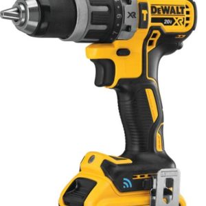FEATURES & SPECS FEATURES LAST SEEN feature helps reduce wasted time and money by providing the street address of where your compact hammerdrill was last in range of your Tool Connect™-enabled deviceEasily and quickly assign tools to jobsites and users on the Tool Connect™ Inventory Manager software, increasing accountability and reducing lost toolsReceive diagnostics on the tool like internal coin cell battery life, temperature, number of trigger pulls, and how long the tool has been runningSet ‘disable when out of range’ alerts to help deter unauthorized use or theftOnce you’ve downloaded the Tool Connect™ app, easily pair with the app by holding down the pair button on the tool foot for 3-5 secondsIncludes a default Home mode and 3 programmable modes to customize speed and light brightnessProgram 3 customized RPM settings for precise speed of applicationCustomize the brightness and delay of the integrated LED lightIntegrated blue LED light indicates when your hammerdrill is paired with your Tool Connect™ appDEWALT brushless motor delivers up to 75% more runtime vs. 18V NiCad brushed motorsErgonomic comfort grip handle provides ideal balance and comfort INCLUDES (1) DCD797 Tool Connect™ Compact Hammerdrill(2) DCB203 2Ah XR® Brushless BatteriesChargerKit Box SPECIFICATIONS BATTERY TYPE LITHIUM ION BLUETOOTH CONNECTIVITY UP TO 100 FT CHUCK SIZE 1/2′ CLUTCH SETTINGS 13 INTEGRATED BATTERY LIFE 3.0 YRS. MAX POWER 460 UWO MAX RPM 0-2000 RPM # OF SPEED SETTINGS 4 POWER TOOL TYPE CORDLESS SYSTEM 20V MAX* TOOL LENGTH 7.4 IN TOOL WEIGHT 3.6 LBS